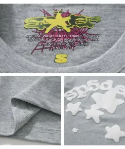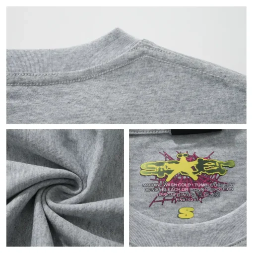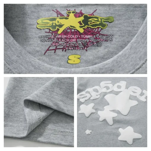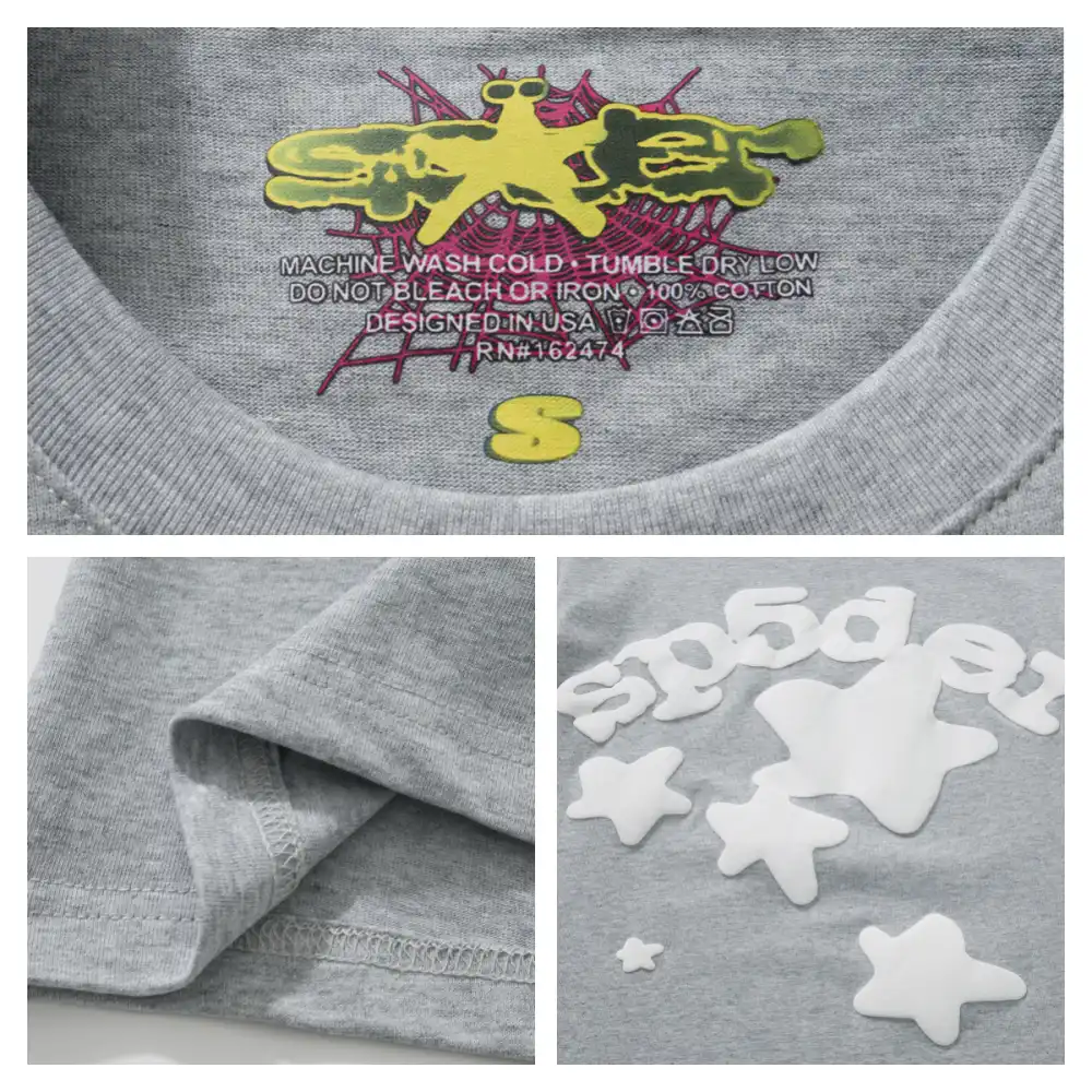 - The design style of Sp5der Tee is unique, often incorporating punk elements and luxurious textures. Its iconic pattern is a stylized spider web, which is often embedded with shiny rhinestones and presented in bright colors, with high recognition. In addition, the design of Sp5der Tee often echoes the nostalgic style of the 2000s, which can resonate with the younger generation who pursue individuality and self-expression.