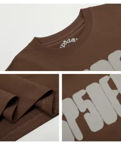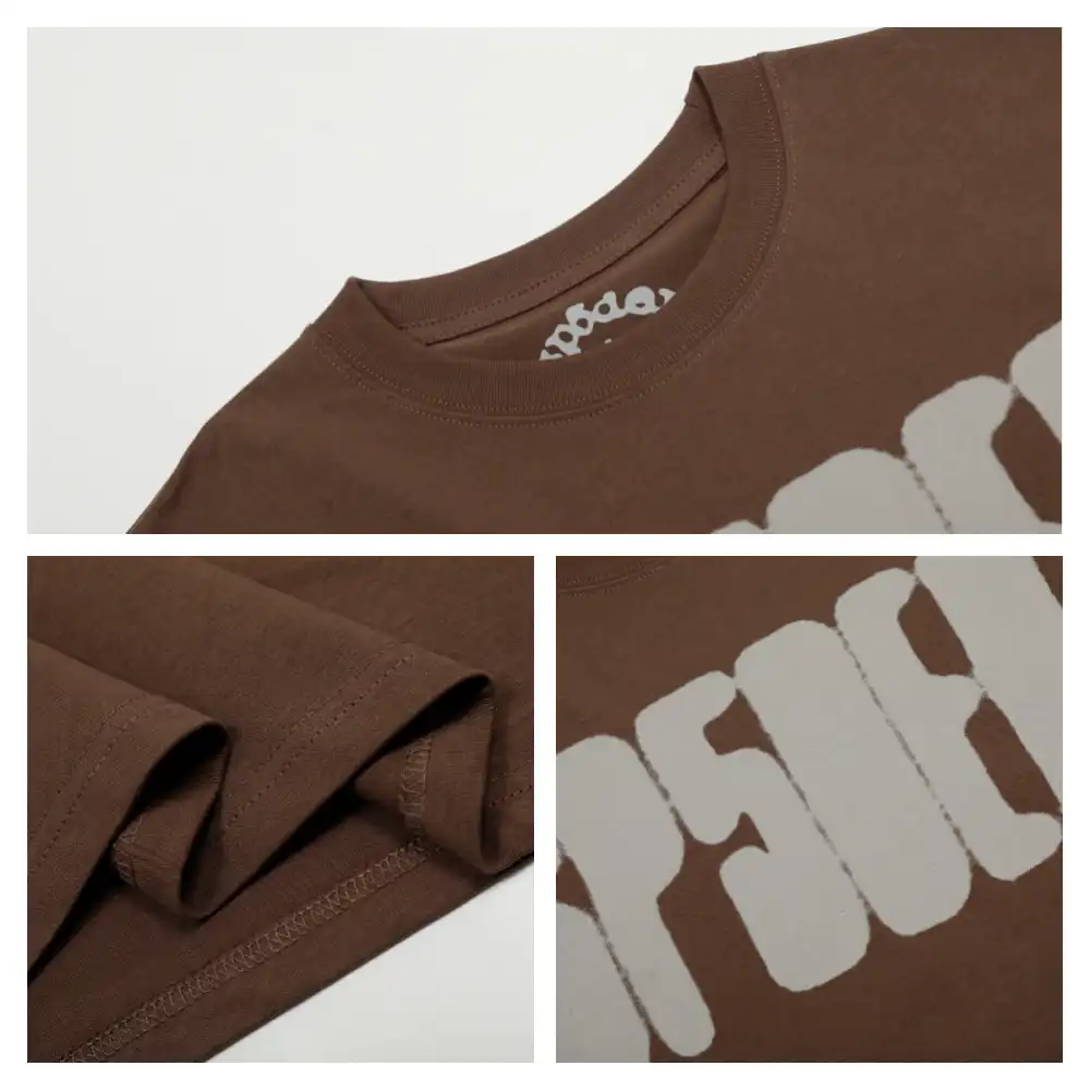 - Sp5der FOCUSED LOGO Brown Tee can be easily matched with various bottoms to create a casual and comfortable daily look.