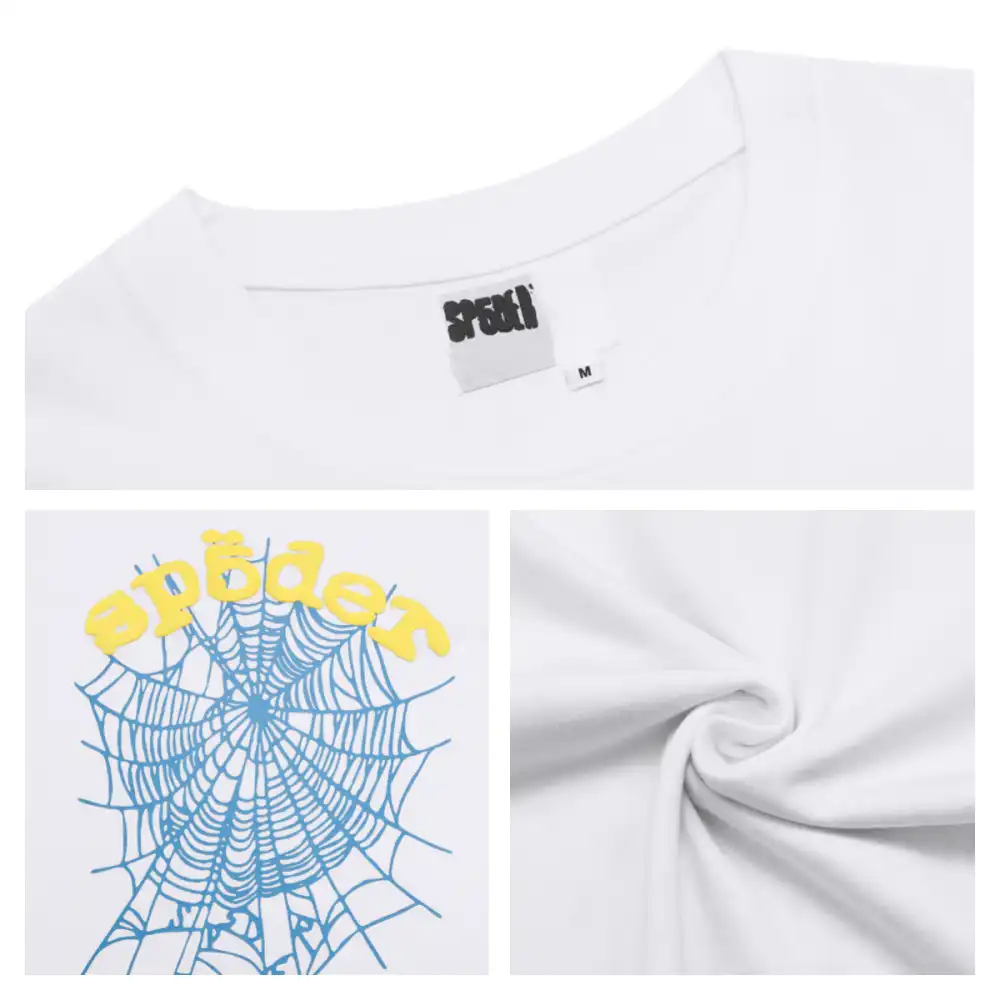 - The design style of Sp5der Tee is unique, often incorporating punk elements and luxurious textures. Its iconic pattern is a stylized spider web, which is often embedded with shiny rhinestones and presented in bright colors, with high recognition. In addition, the design of Sp5der Tee often echoes the nostalgic style of the 2000s, which can resonate with the younger generation who pursue individuality and self-expression.