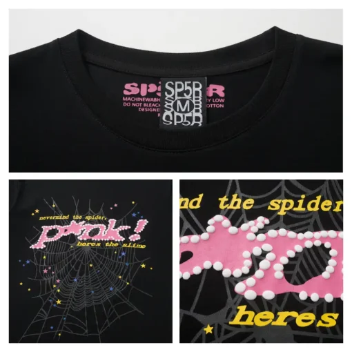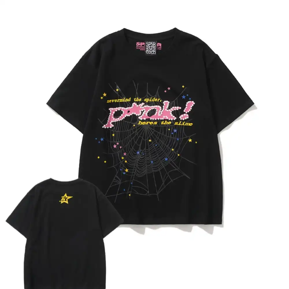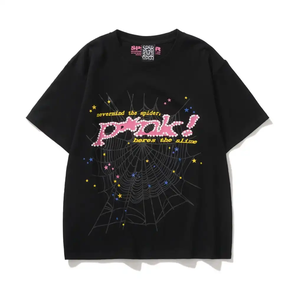 - The design style of Sp5der Tee is unique, often incorporating punk elements and luxurious textures. Its iconic pattern is a stylized spider web, which is often embedded with shiny rhinestones and presented in bright colors, with high recognition. In addition, the design of Sp5der Tee often echoes the nostalgic style of the 2000s, which can resonate with the younger generation who pursue individuality and self-expression.