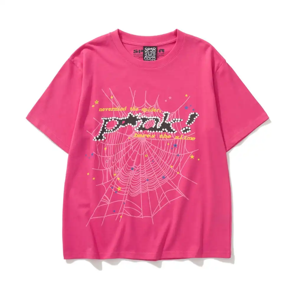 - Sp5der OG P*NK Pink Tee can be easily matched with various bottoms to create a casual and comfortable daily look.