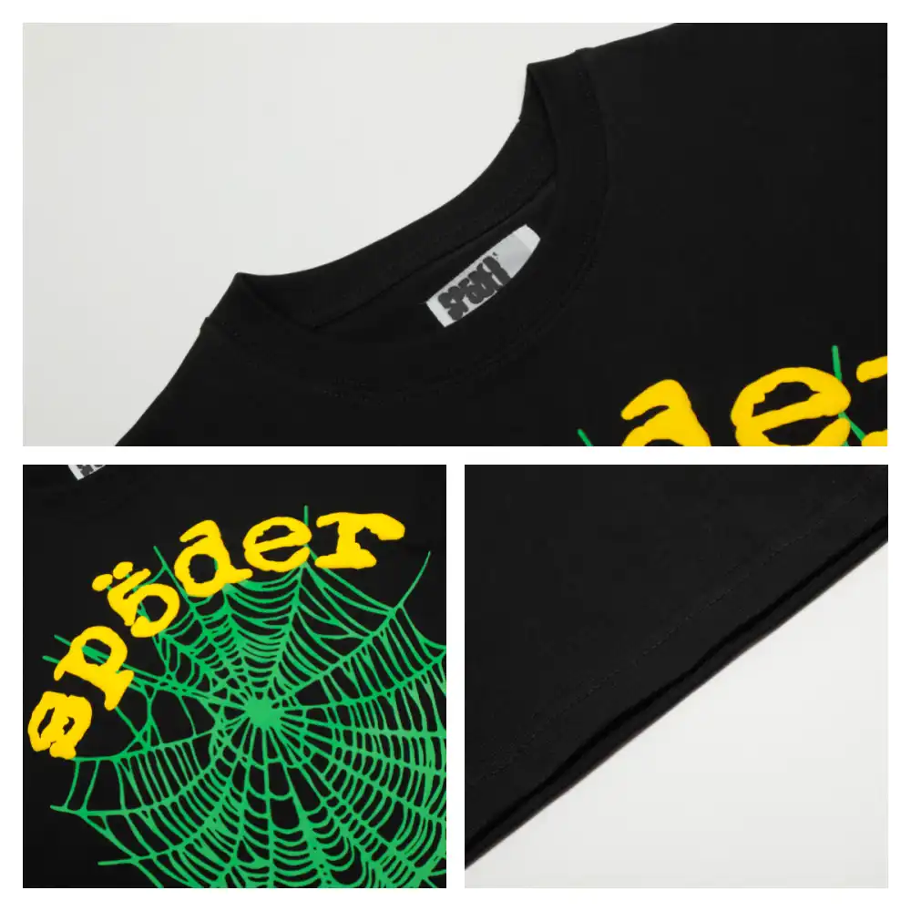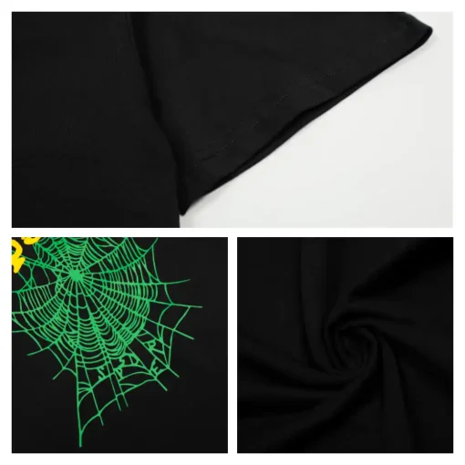 - The design style of Sp5der Tee is unique, often incorporating punk elements and luxurious textures. Its iconic pattern is a stylized spider web, which is often embedded with shiny rhinestones and presented in bright colors, with high recognition. In addition, the design of Sp5der Tee often echoes the nostalgic style of the 2000s, which can resonate with the younger generation who pursue individuality and self-expression.