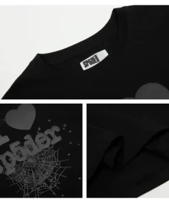 - The design style of Sp5der Tee is unique, often incorporating punk elements and luxurious textures. Its iconic pattern is a stylized spider web, which is often embedded with shiny rhinestones and presented in bright colors, with high recognition. In addition, the design of Sp5der Tee often echoes the nostalgic style of the 2000s, which can resonate with the younger generation who pursue individuality and self-expression.