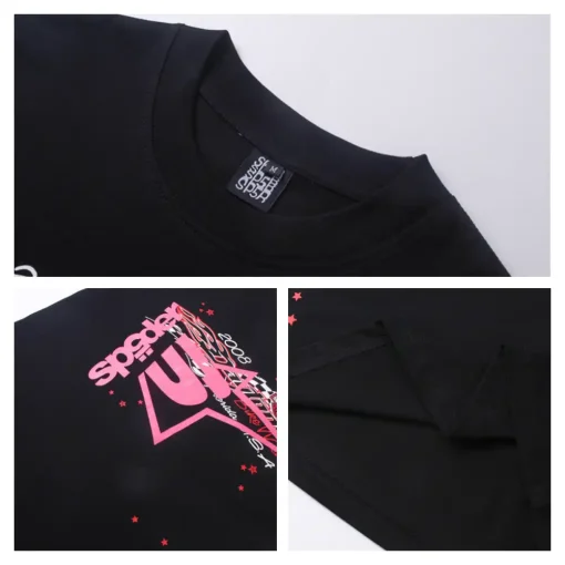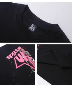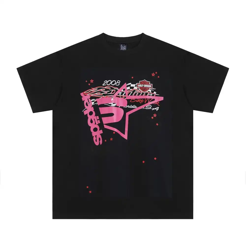 - The design style of Sp5der Tee is unique, often incorporating punk elements and luxurious textures. Its iconic pattern is a stylized spider web, which is often embedded with shiny rhinestones and presented in bright colors, with high recognition. In addition, the design of Sp5der Tee often echoes the nostalgic style of the 2000s, which can resonate with the younger generation who pursue individuality and self-expression.