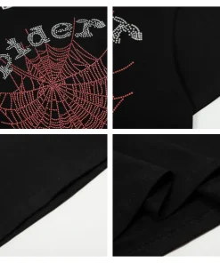 - The design style of Sp5der Tee is unique, often incorporating punk elements and luxurious textures. Its iconic pattern is a stylized spider web, which is often embedded with shiny rhinestones and presented in bright colors, with high recognition. In addition, the design of Sp5der Tee often echoes the nostalgic style of the 2000s, which can resonate with the younger generation who pursue individuality and self-expression.