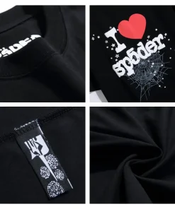 - The design style of Sp5der Tee is unique, often incorporating punk elements and luxurious textures. Its iconic pattern is a stylized spider web, which is often embedded with shiny rhinestones and presented in bright colors, with high recognition. In addition, the design of Sp5der Tee often echoes the nostalgic style of the 2000s, which can resonate with the younger generation who pursue individuality and self-expression.