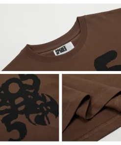 - Sp5der SP5 SEX Brown Tee can be easily matched with various bottoms to create a casual and comfortable daily look.