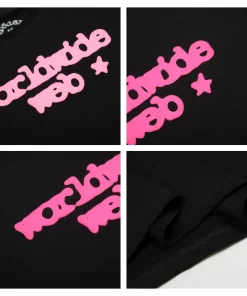 - The design style of Sp5der Tee is unique, often incorporating punk elements and luxurious textures. Its iconic pattern is a stylized spider web, which is often embedded with shiny rhinestones and presented in bright colors, with high recognition. In addition, the design of Sp5der Tee often echoes the nostalgic style of the 2000s, which can resonate with the younger generation who pursue individuality and self-expression.