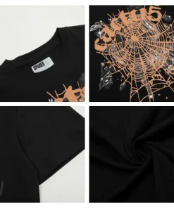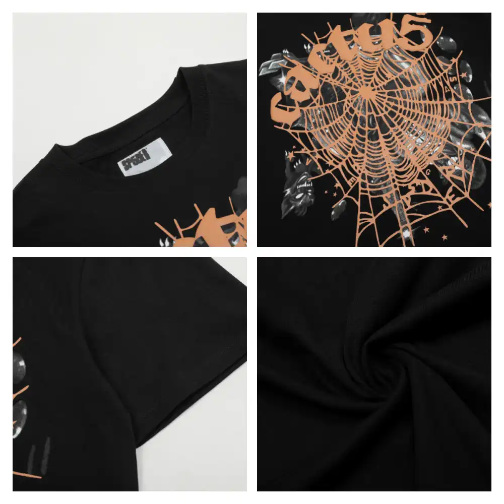 - The design style of Sp5der Tee is unique, often incorporating punk elements and luxurious textures. Its iconic pattern is a stylized spider web, which is often embedded with shiny rhinestones and presented in bright colors, with high recognition. In addition, the design of Sp5der Tee often echoes the nostalgic style of the 2000s, which can resonate with the younger generation who pursue individuality and self-expression.