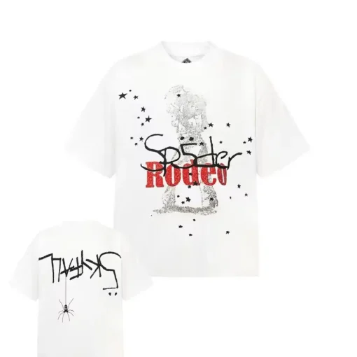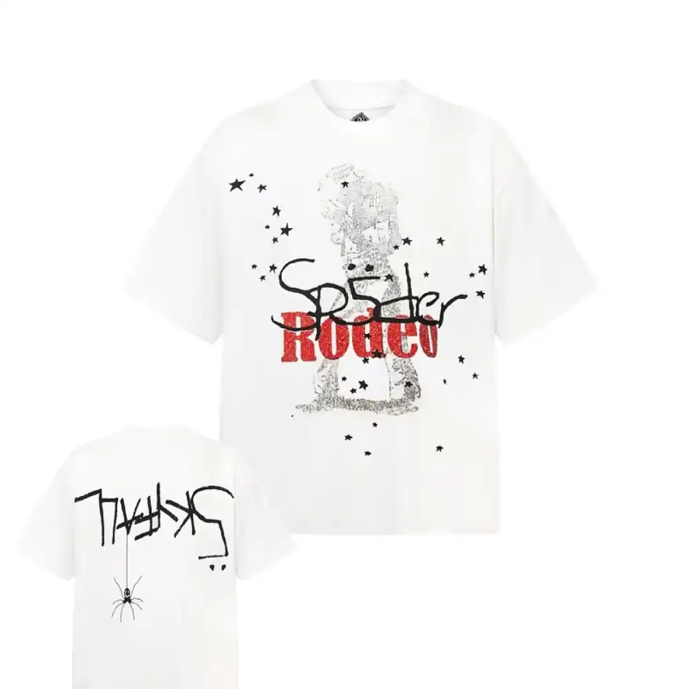 - Travis Scott Cactus Jack x Sp5der Days Before Rodeo II White Tee can be easily matched with various bottoms to create a casual and comfortable daily look.
