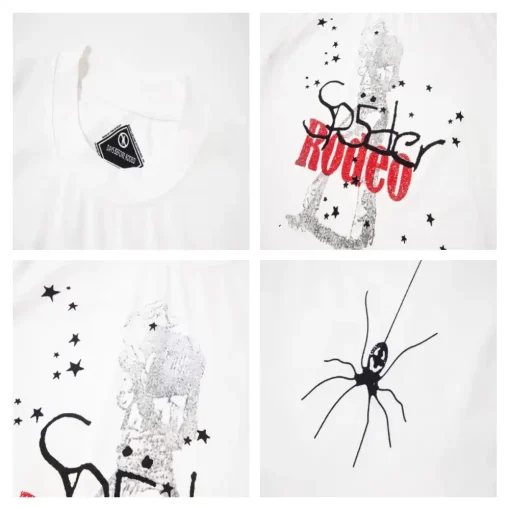 - The design style of Sp5der Tee is unique, often incorporating punk elements and luxurious textures. Its iconic pattern is a stylized spider web, which is often embedded with shiny rhinestones and presented in bright colors, with high recognition. In addition, the design of Sp5der Tee often echoes the nostalgic style of the 2000s, which can resonate with the younger generation who pursue individuality and self-expression.