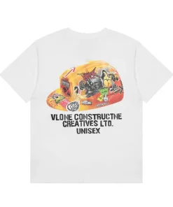 - Highly versatile, the Vlone Constructs x Hard Hat White Tee can be seamlessly styled with all kinds of bottoms to achieve a relaxed, cozy daily outfit.