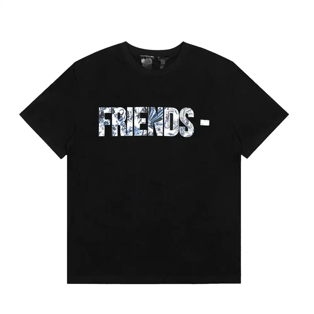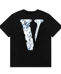 Vlone Friends – Blue and White Porcelain Big V Logo Black Tee