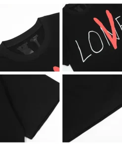 - Highly versatile, the Vlone Love Black Tee can be seamlessly styled with all kinds of bottoms to achieve a relaxed, cozy daily outfit.