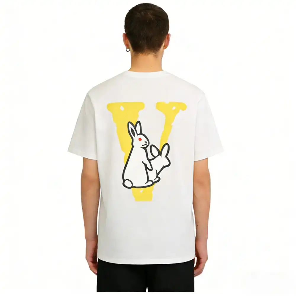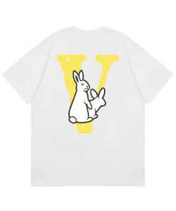 - Highly versatile, the Vlone Love Rabbit Yellow V White Tee can be seamlessly styled with all kinds of bottoms to achieve a relaxed, cozy daily outfit.