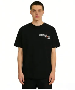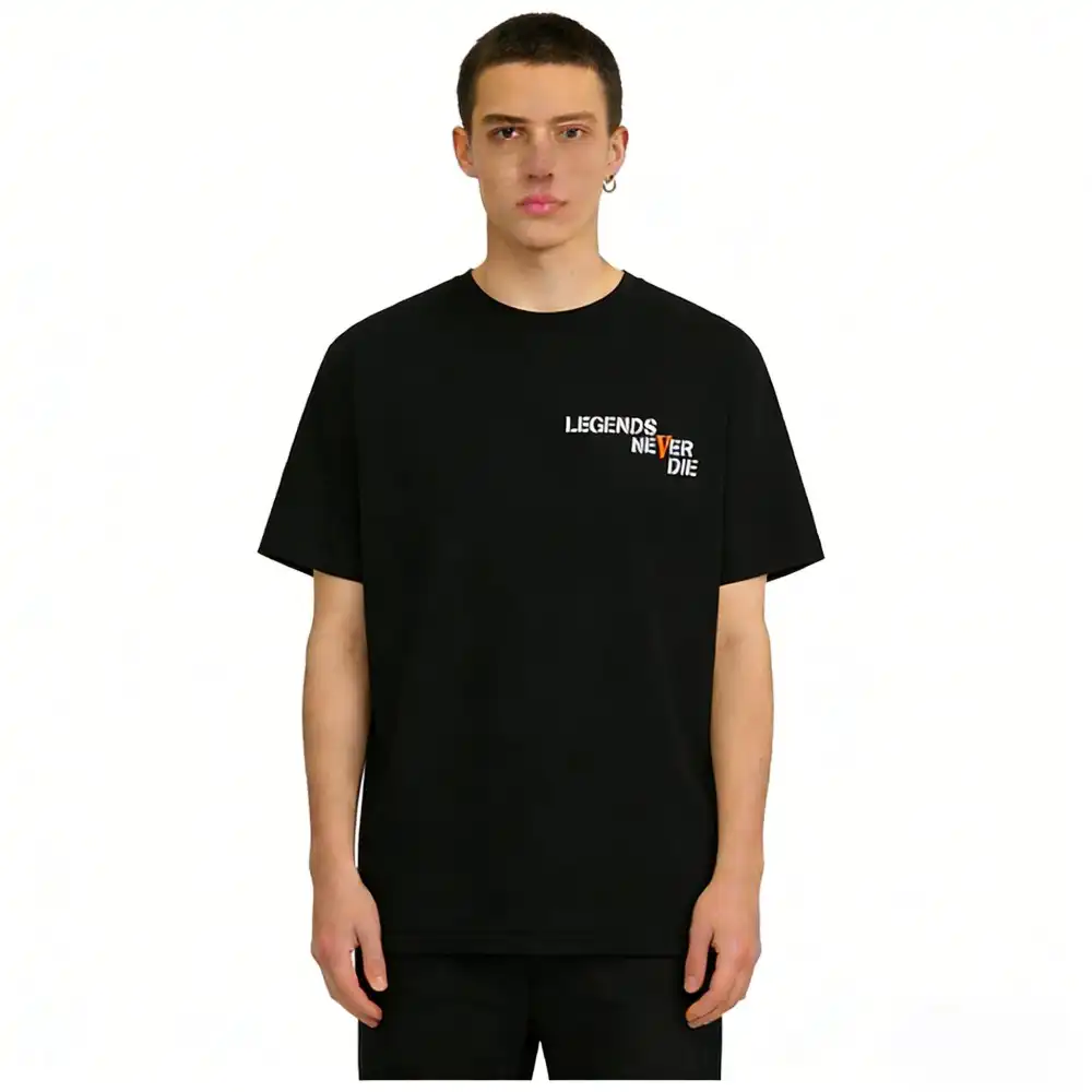 - This VLONE x Juice WRLD collaborative tee features the iconic “LEGENDS NEVER DIE” slogan printed on the chest, with the “V” highlighted in a vibrant orange that nods to both VLONE’s signature logo and Juice WRLD’s “999” legacy. The back showcases an oversized orange “V” logo, infused with the “999” graphic to honor the late rapper’s enduring impact, creating a heartfelt tribute that merges streetwear with hip-hop history.