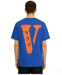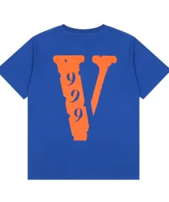 - Highly versatile, the Vlone X 999 X Juice Wrld Orange V Logo Blue Tee can be seamlessly styled with all kinds of bottoms to achieve a relaxed, cozy daily outfit.