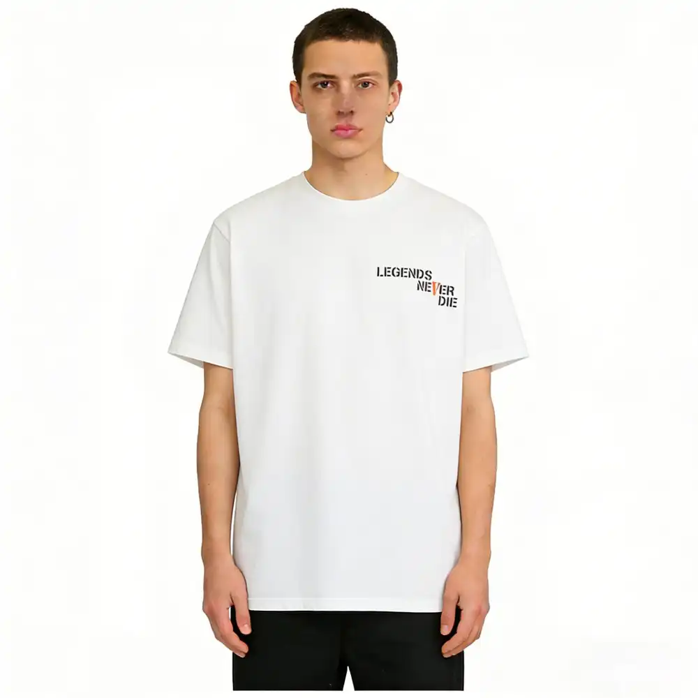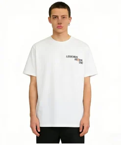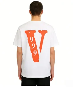 - This VLONE x Juice WRLD collaborative tee features the iconic “LEGENDS NEVER DIE” slogan printed on the chest, with the “V” highlighted in a vibrant orange that nods to both VLONE’s signature logo and Juice WRLD’s “999” legacy. The back showcases an oversized orange “V” logo, infused with the “999” graphic to honor the late rapper’s enduring impact, creating a heartfelt tribute that merges streetwear with hip-hop history.