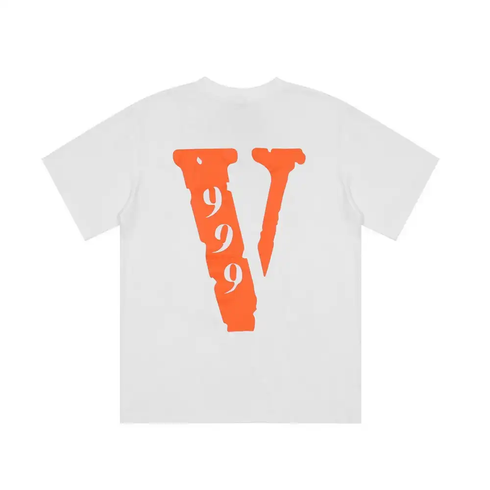 - Highly versatile, the Vlone X 999 X Juice Wrld Orange V Logo White Tee can be seamlessly styled with all kinds of bottoms to achieve a relaxed, cozy daily outfit.