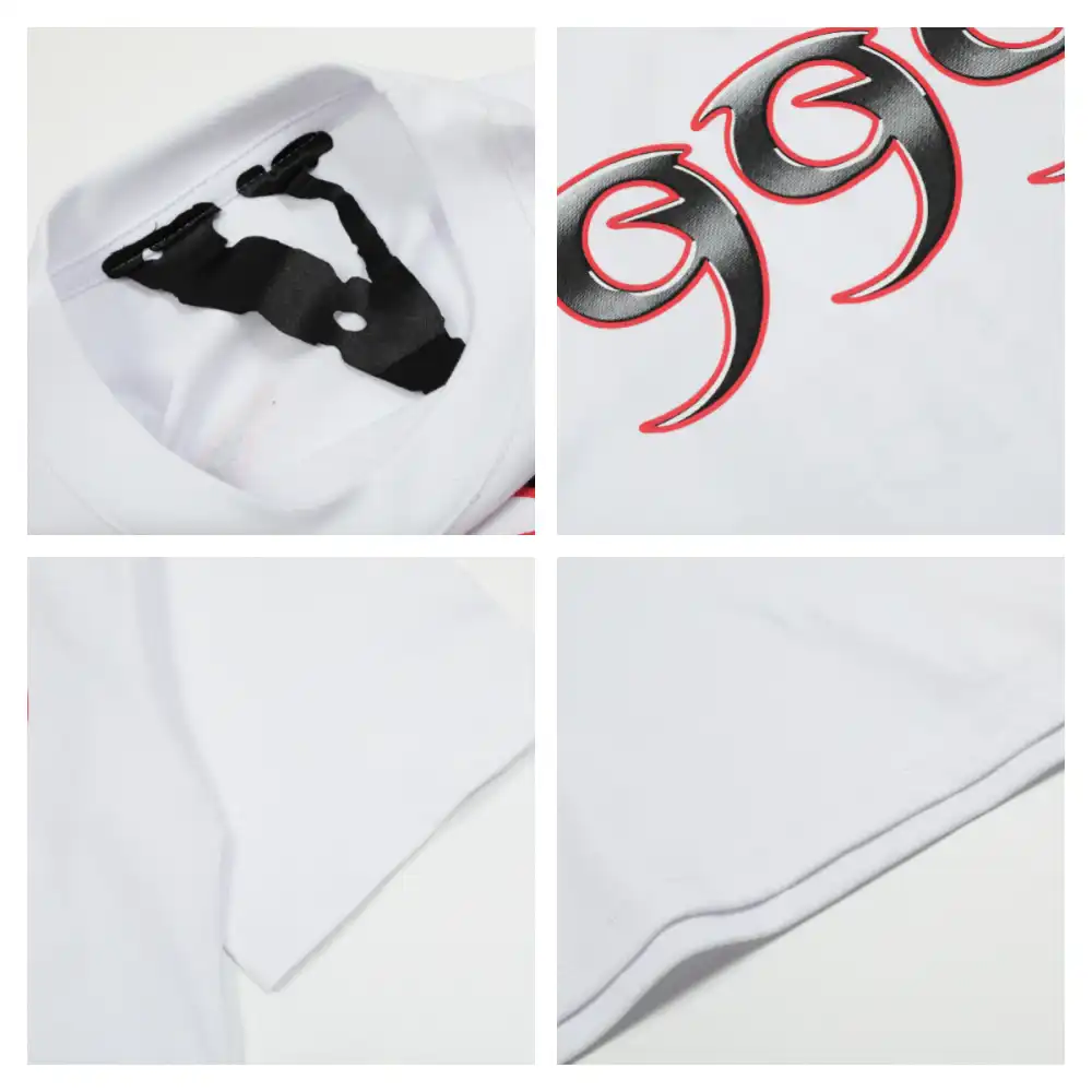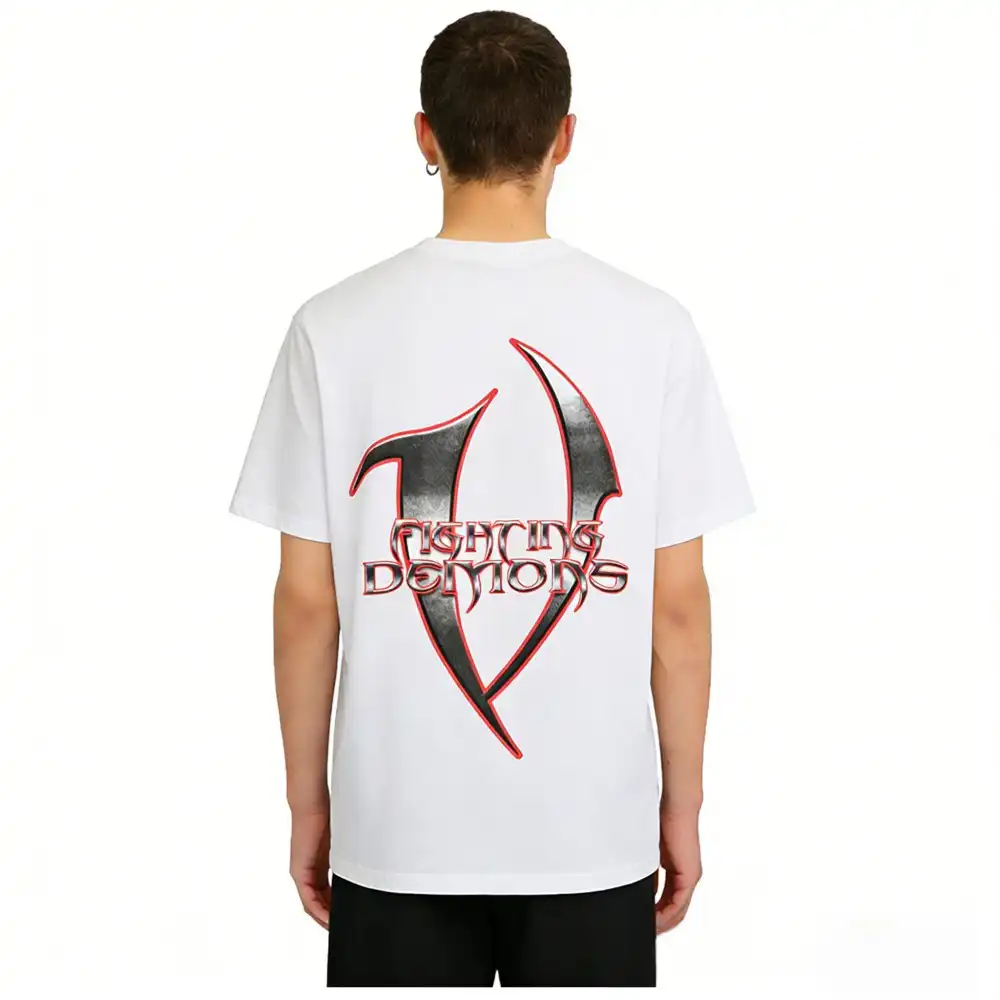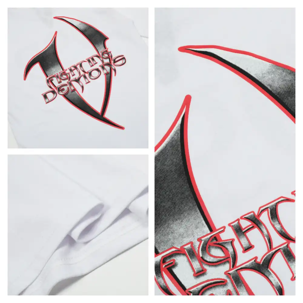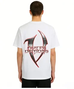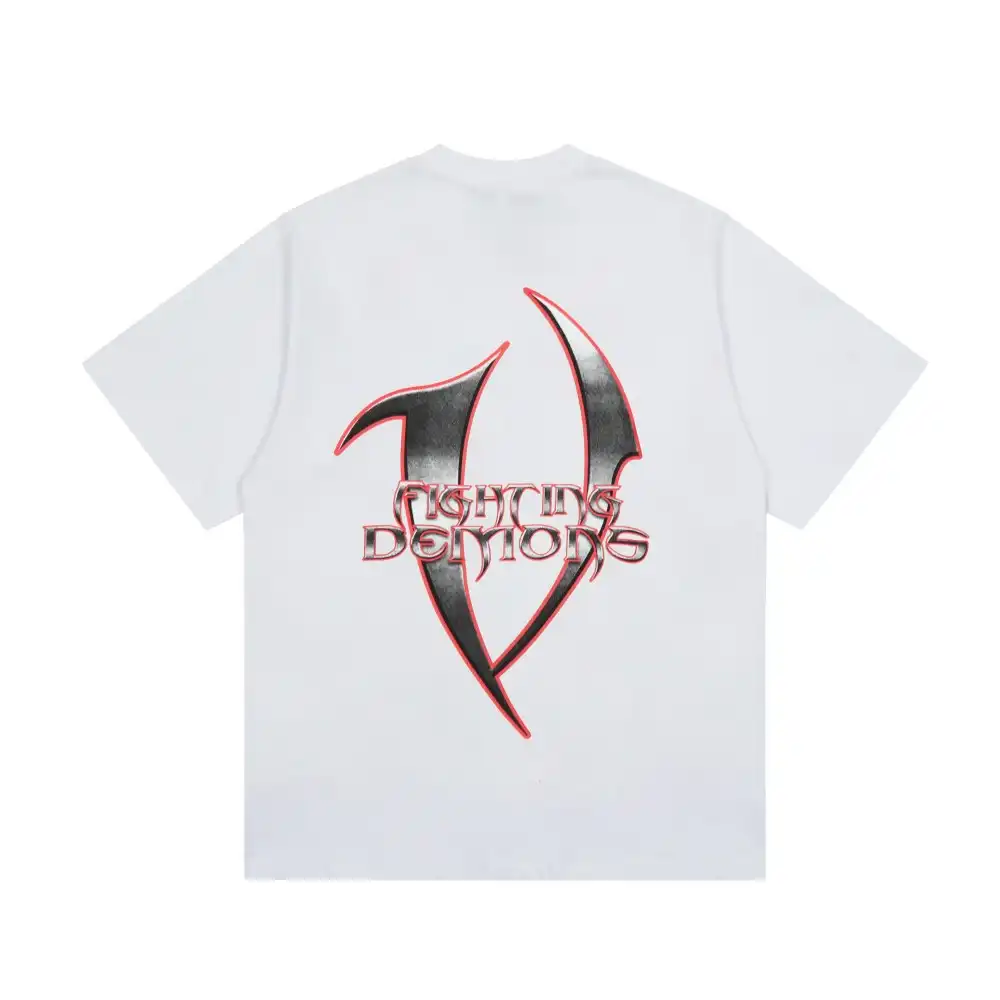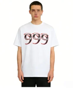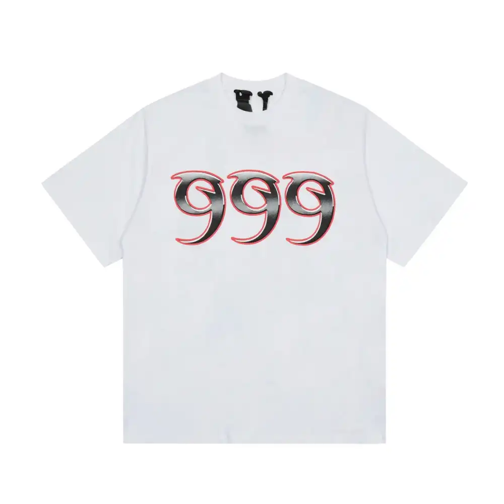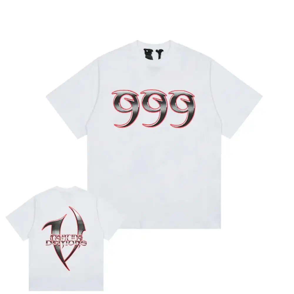 - This VLONE x Juice WRLD tribute tee features the iconic “999” graphic on the chest in a bold black-and-red outlined font, a direct nod to the late rapper’s signature symbol. The back showcases an oversized “V” logo with the “FIGHTING DEMONS” slogan beneath it, merging VLONE’s streetwear identity with a heartfelt homage to Juice WRLD’s album and legacy.